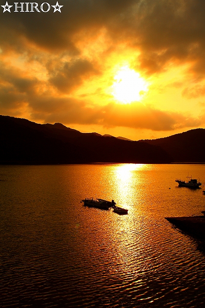 途中の港の夕焼けが綺麗でパチリ![]()