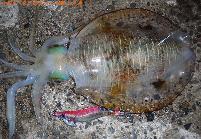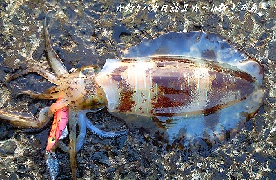 この後は 足元にいた300gくらいの見えイカを誘って