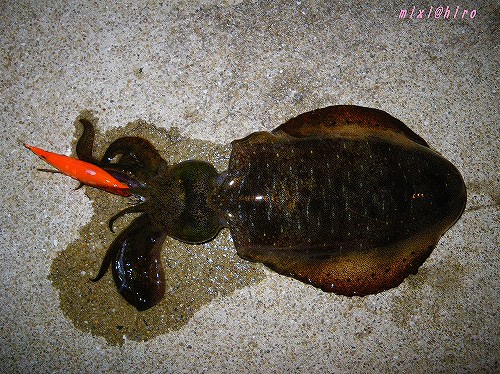 潮が悪いのか その後は魚の活性も低くなったので持参のエギを装着して